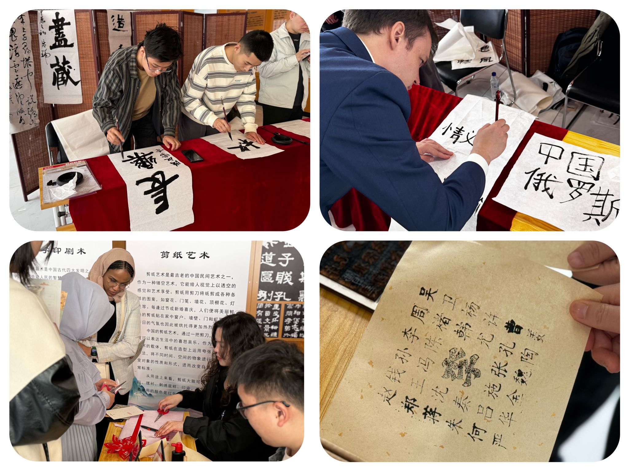在文化展示活动中,我校展出书法艺术、活字印刷术和剪纸艺术,来自美术学院、国际教师教育学院和地理科学学院的志愿者向全省中外师生展示了中国优秀传统文化,精湛的书法技巧、精致的剪纸设计和活字印刷术的巧思吸引了众多留学生前来体验,充分展示了中华民族博大精深的灿烂文化。