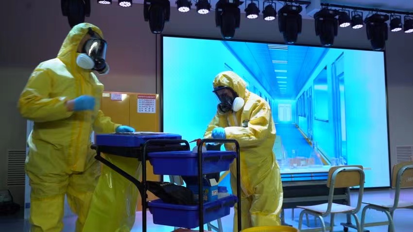 本次演练包括实验室酸类危化品泄露和受伤人员心肺复苏两个环节。参演师生按照学校实验室安全应急预案处置流程,有序完成人员紧急撤离、事故报告、应急处置等环节。