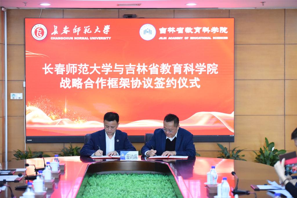 研究生院院长孙凌晨与吉林省教育科学院院长兼党委书记郭天宝签订《长春师范大学与吉林省教育科学院战略合作框架协议》。