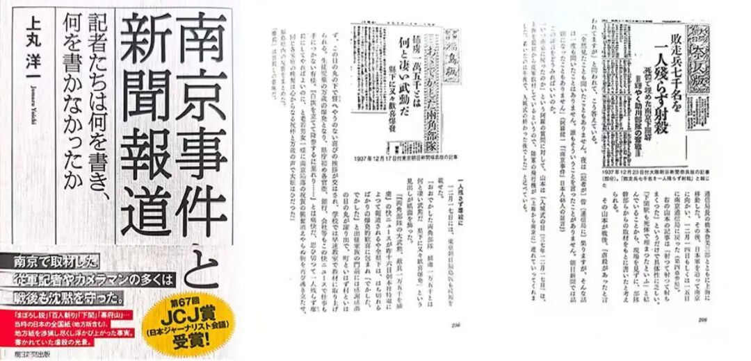 曾任朝日新闻社记者的上丸洋一退休后用三年多时间撰写了一本书,名为《南京事件与新闻报道:记者们写了什么,没写什么》,该书是基于他对日本媒体如何报道南京大屠杀所做的调查撰写而成。他查阅了全日本约80种报纸及相关资料,发现当时的媒体被大量不实信息所充斥,或者是所谓的“正面报道”,或者对此保持缄默、视而不见。比如《朝日新闻》说,南京陷落时,日军在南京郊外的幕府山俘获了约1.5万名俘虏,但关于这些俘虏后来如何处置,该报并未有后续报道。战后,日军部队有军官作证称,由于俘虏陆续逃亡,最终只剩约1000人,日本防卫省的官方战争史也沿用了这一数字。然而,上丸洋一调查发现,当时的报纸中,曾刊登过暗示幕府山大约有2万人被杀害的报道。