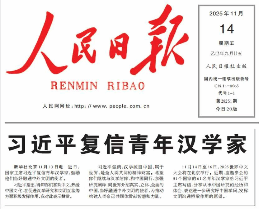 “得知你们喜欢中文、热爱中国文化,在促进汉学研究和文明互鉴等方面积极发挥作用,我对此表示赞赏。”近日,国家主席习近平复信青年汉学家,勉励他们当好融通中外文明的使者。