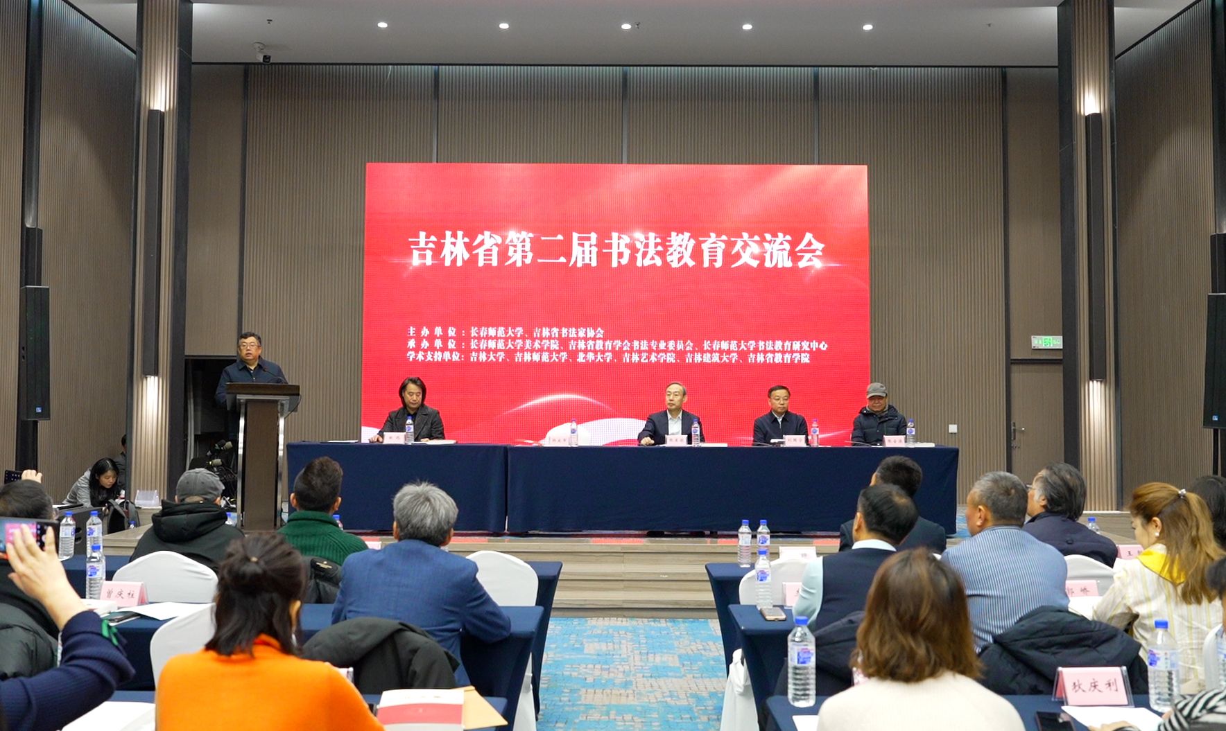 吉林省书法家协会副主席、秘书长李济时,全省部分中小学校书法教研员,长春师范大学书法专业全体师生等110余人参加会议。