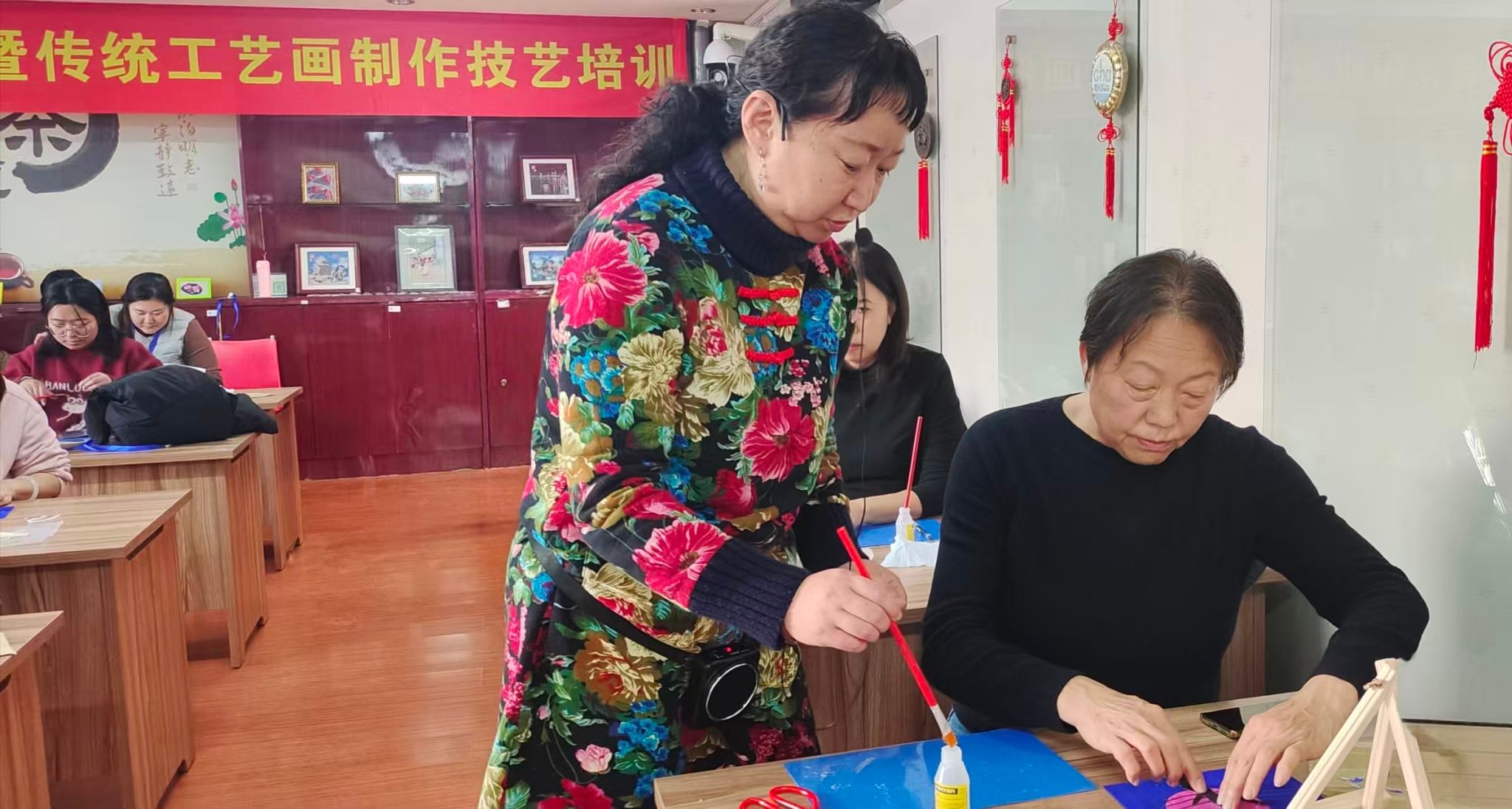 课堂上,学员们专注聆听、积极互动,从剪纸的精巧剪刻到刺绣的针法运用,从鱼皮的处理到布贴的创意组合,对每一项技艺都反复练习、精益求精。学员们纷纷表示,通过此次培训,不仅系统掌握了传统工艺画的制作技巧,更深刻体会到非遗背后的工匠精神与文化内涵,为今后的创作与传承提供思路。