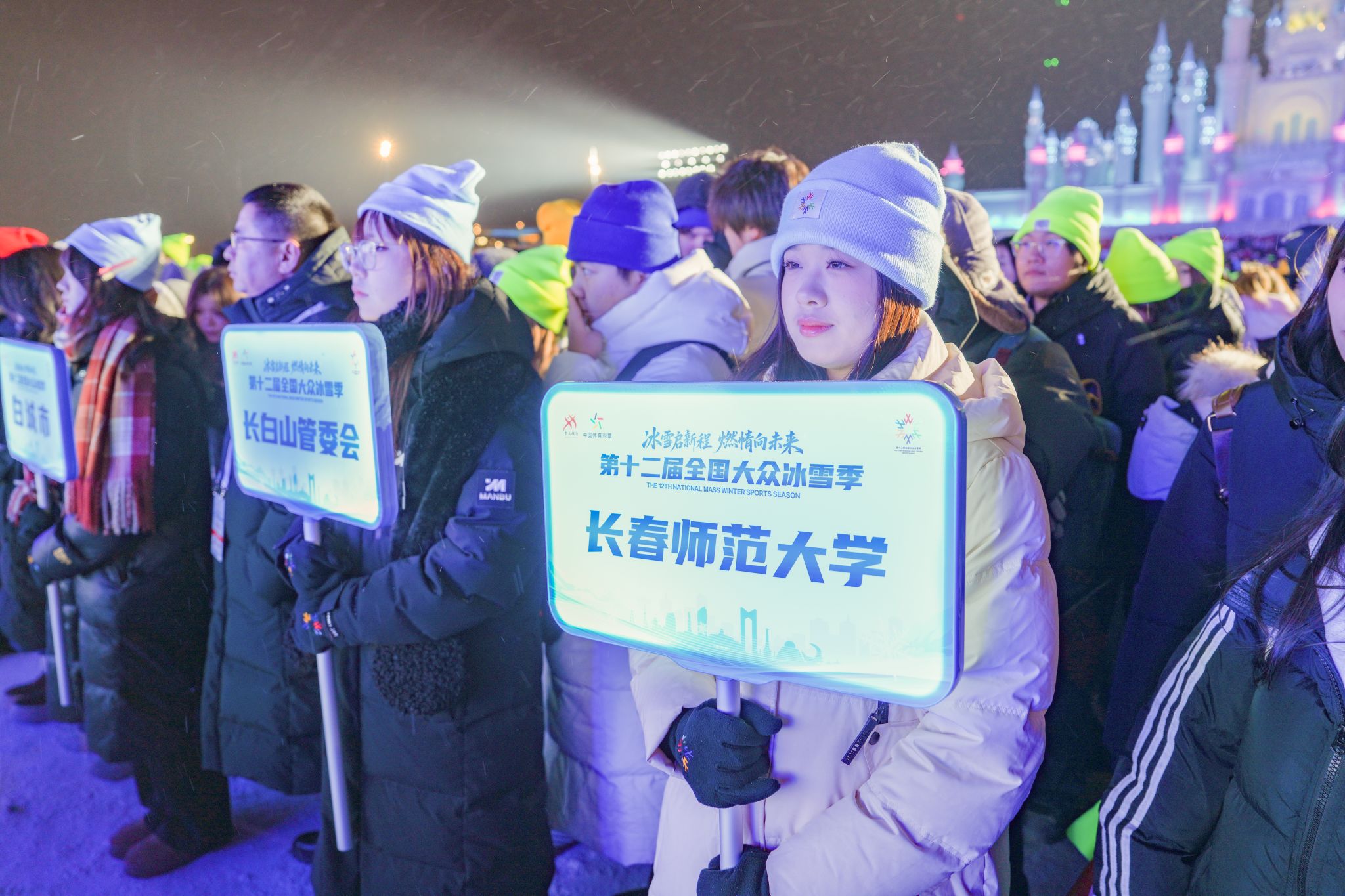 学校党委书记刘多、党委副书记张广翠、纪委书记车延锋带队,率领全校4000余名师生热情奔赴这场冰雪盛宴,在志愿服务、“抽冰尜”节目表演、师生现场参与等关键环节扛起重任,以实际行动践行冰雪育人理念,为吉林冰雪事业发展贡献长师力量。