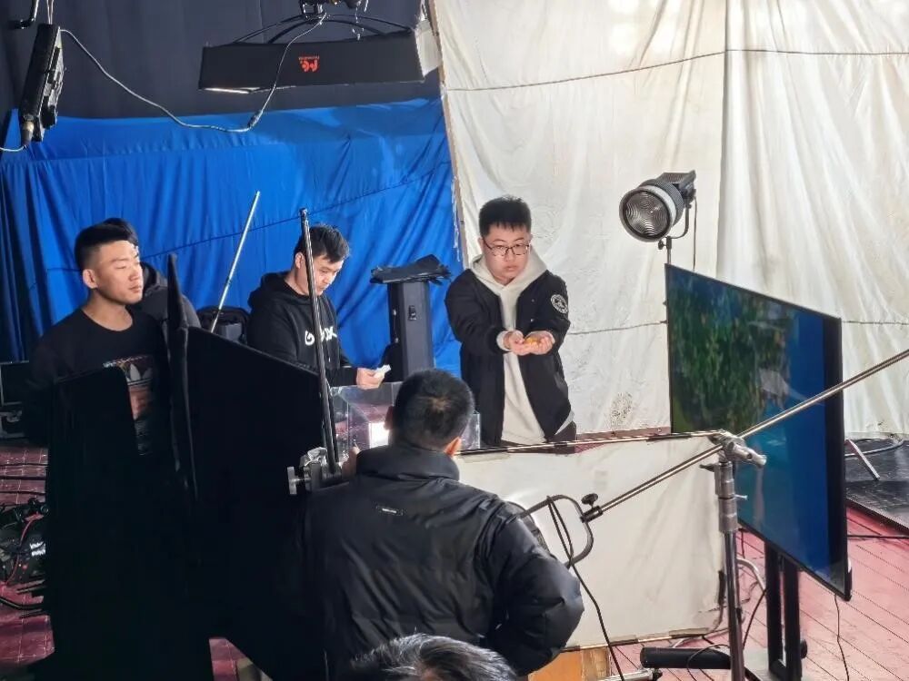 学生在长影制片厂四号棚、浙江横店生成式人工智能创作基地拍摄